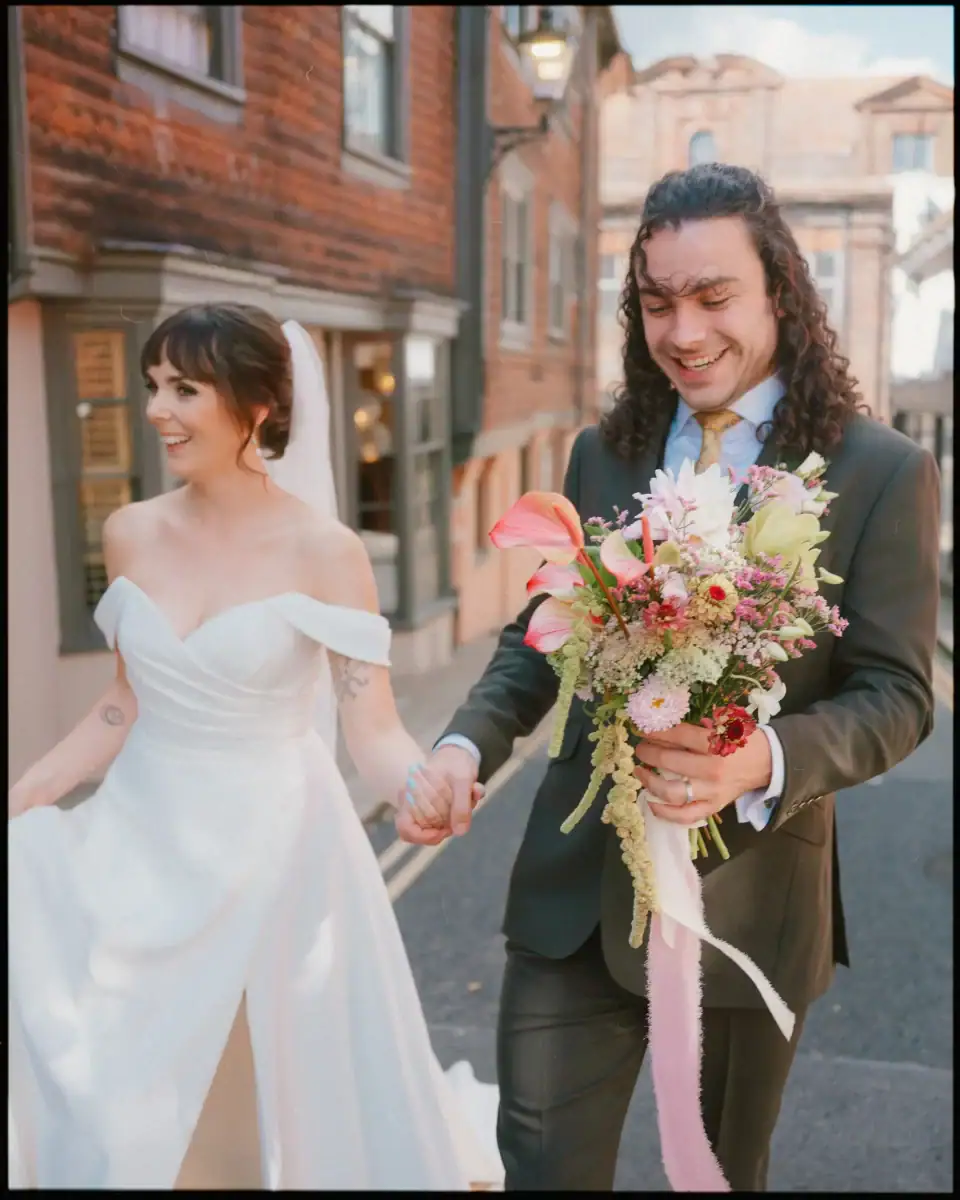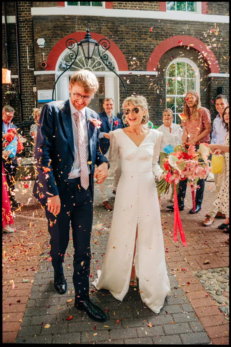 There’s also something about the way East London weddings feel. The city carries on around you — buses, street noise, the everyday — and rather than competing with it, the best weddings lean into it. Confetti on town hall steps while strangers walk past. Portraits in Hackney backstreets. A vintage double-decker pulling up outside a wine bar in Bethnal Green. It’s a backdrop that makes every wedding feel unmistakably itself.
