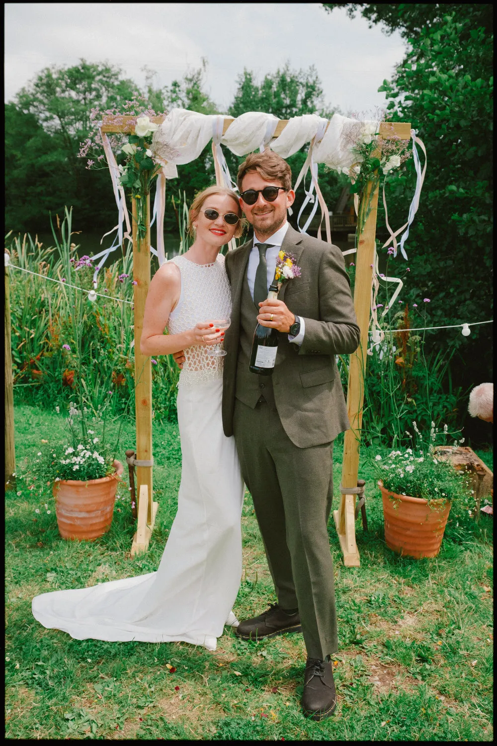 That’s exactly what Vicki and Sam did for their Frickley Lake wedding. They wanted a day that felt like them: colourful, laid-back, and filled with the energy of a music festival. Friends and family gathered lakeside, drinks in hand, ready for a celebration that was more party than performance.