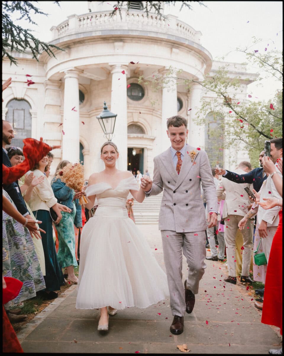 Nathan and Jess began their day at The Parish Church of St Paul, Deptford. The church sits just off Deptford High Street and has a rich sense of history. The ceremony was heartfelt and personal, with family and friends filling the pews. Jess walked down the aisle with a smile that lit up the space. After the vows, guests spilled outside for confetti on the steps. The celebration already felt joyful and relaxed, setting the tone for the rest of the day.