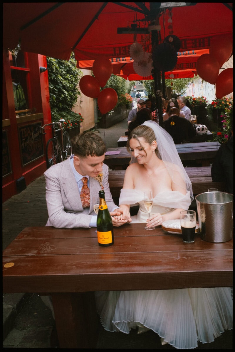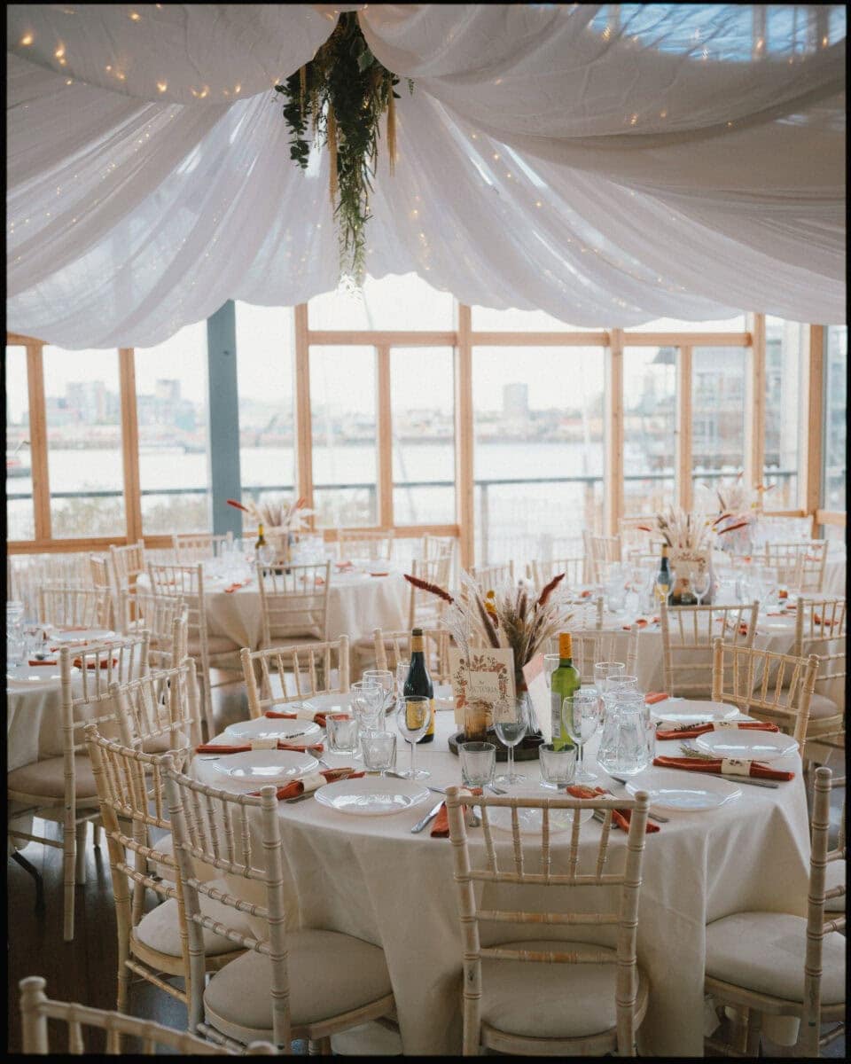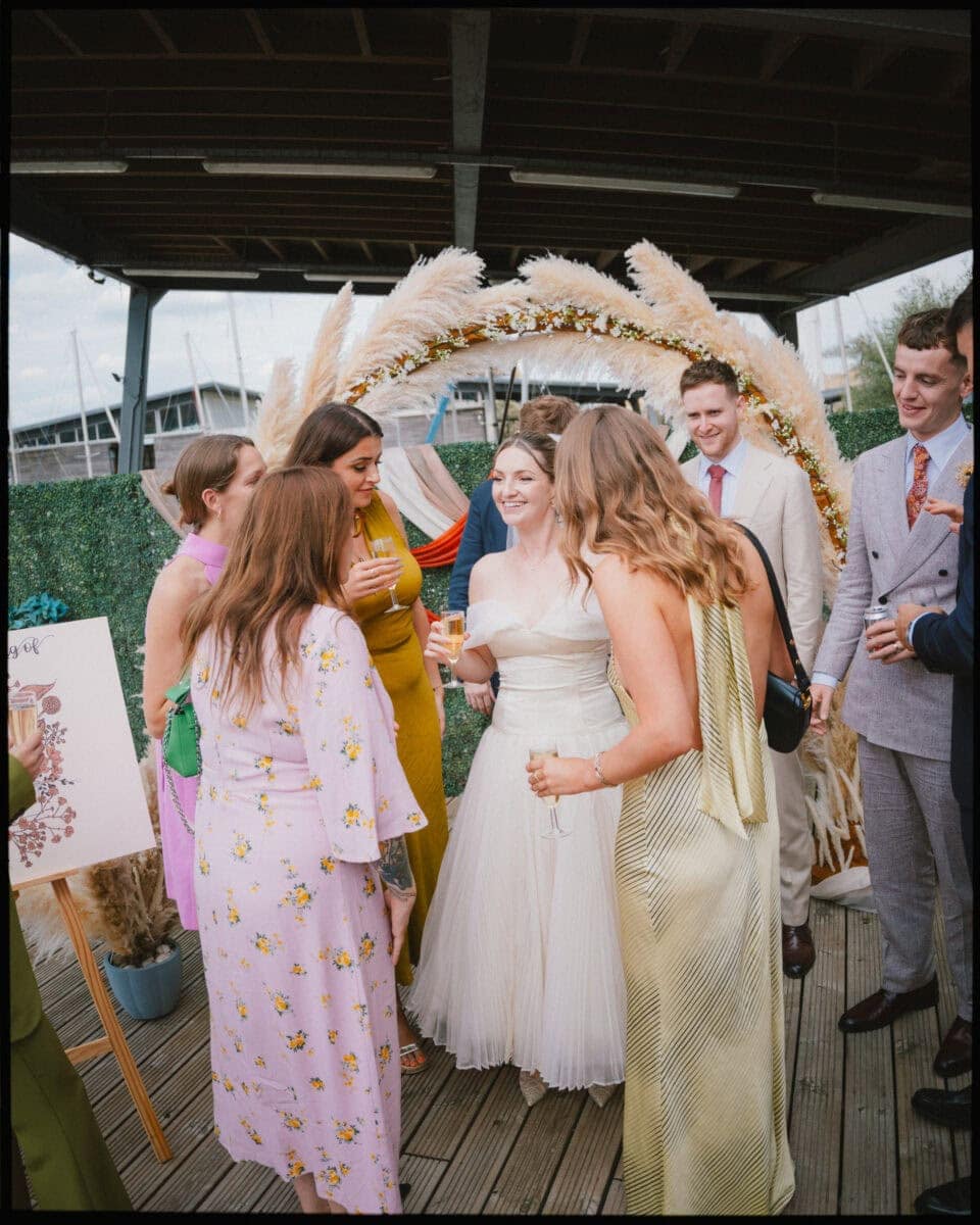 After the ceremony, guests made their way to Greenwich Yacht Club. This venue feels like a hidden gem in East London. It sits right on the river, with sweeping views across the city. Drinks began outside on the deck, with friends catching up and children running around in the sunshine. Inside, the Yacht Club felt relaxed and full of character. Nathan and Jess had chosen simple, personal touches that reflected their style. As a result, the atmosphere was warm, colourful, and welcoming.