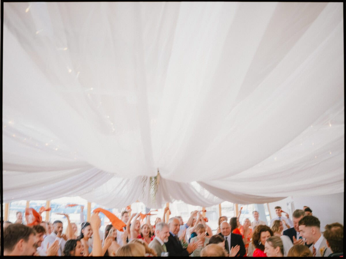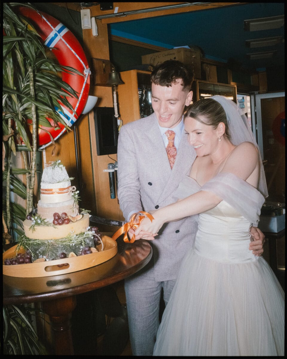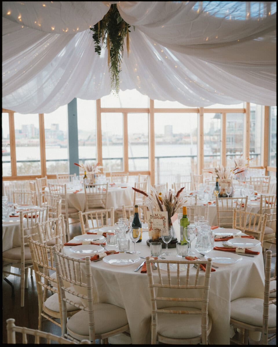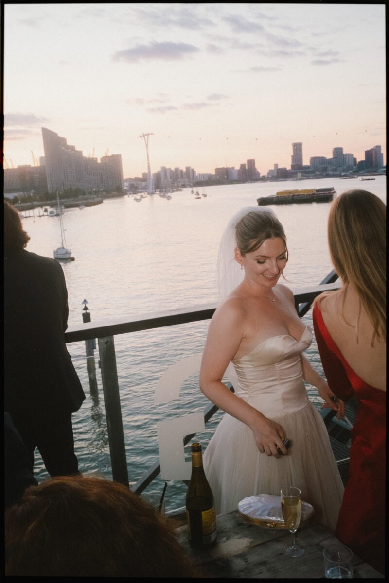 Greenwich Yacht Club sits right on the Thames and it feels genuinely surprising every time. Drinks on the deck with the river in front and the city skyline across the water — it’s one of those views that makes guests stop mid-conversation. Inside, Nathan and Jess had kept things simple and personal. Long tables, warm light, the kind of atmosphere that builds naturally when people are genuinely happy to be in the same room. No venue styling needed when the backdrop is doing that much work.