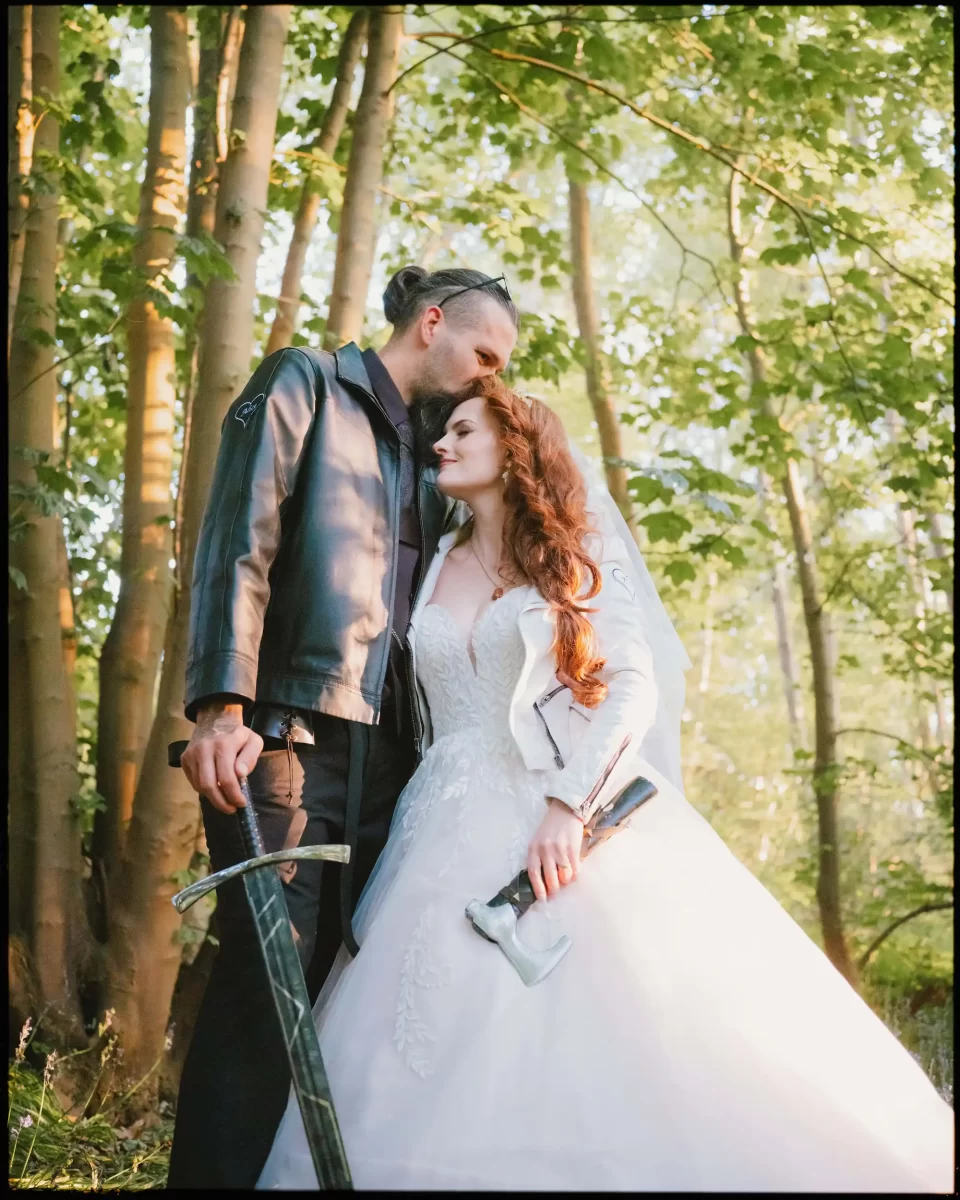 There was a carousel (technically a galloper), which they rode like kids at a fair. Later came toasts from horn mugs, organ music echoing through the barn, and golden hour quiet by the lake. They threw on matching jackets, sat on a bench together, and just… exhaled.