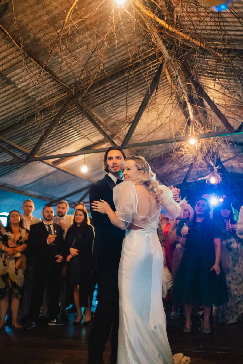 Later, everyone made their way to the woodland reception. The speeches were full of laughter, the tables glowed with candles, and as the night went on the dance floor lit up under strings of lights.