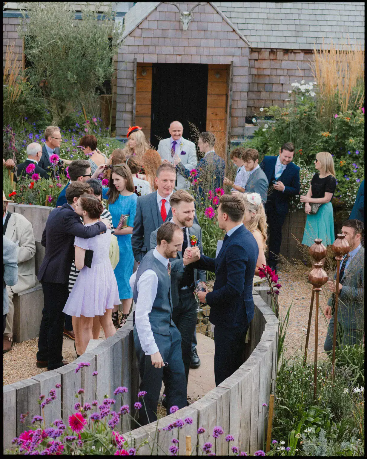 A big summer celebration spilling into the garden. Guests drank under festoon lights, kids played in the courtyard, and the party carried on into the night in The Stables.